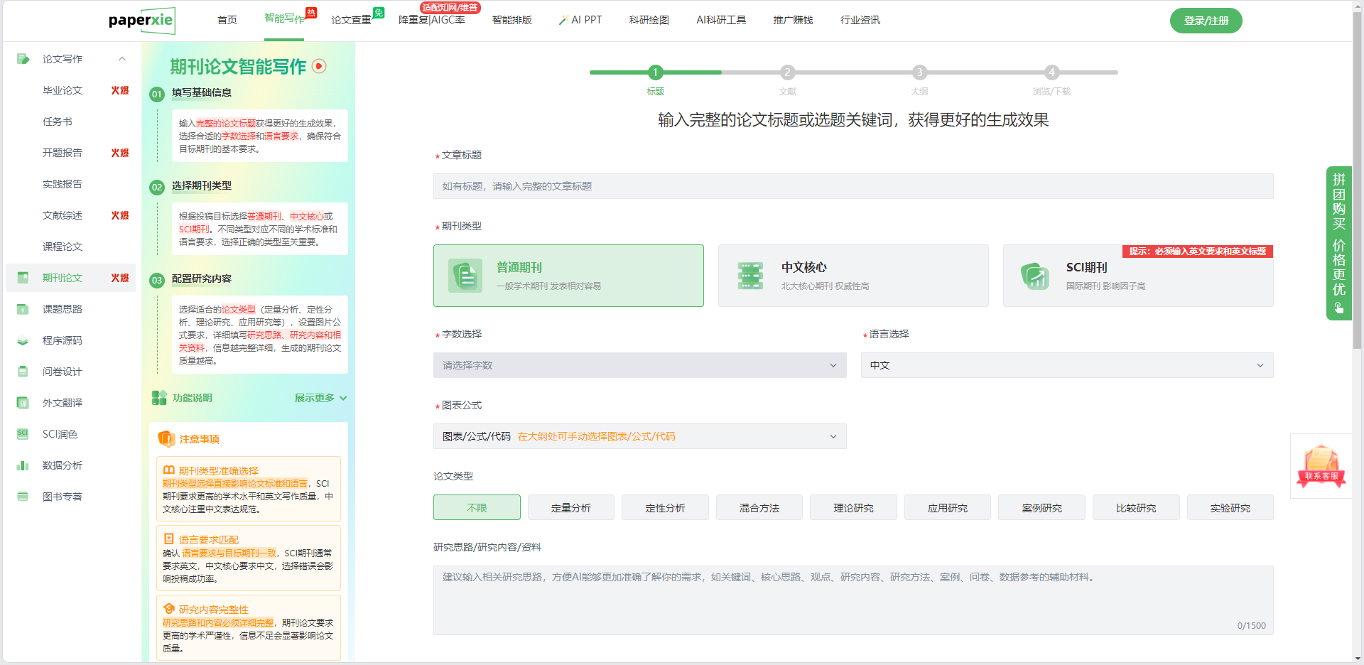 打开 paperxie 的 “期刊论文” 页面,左侧的 “三步核心流程”,正好对应投期刊的三大关键门槛: