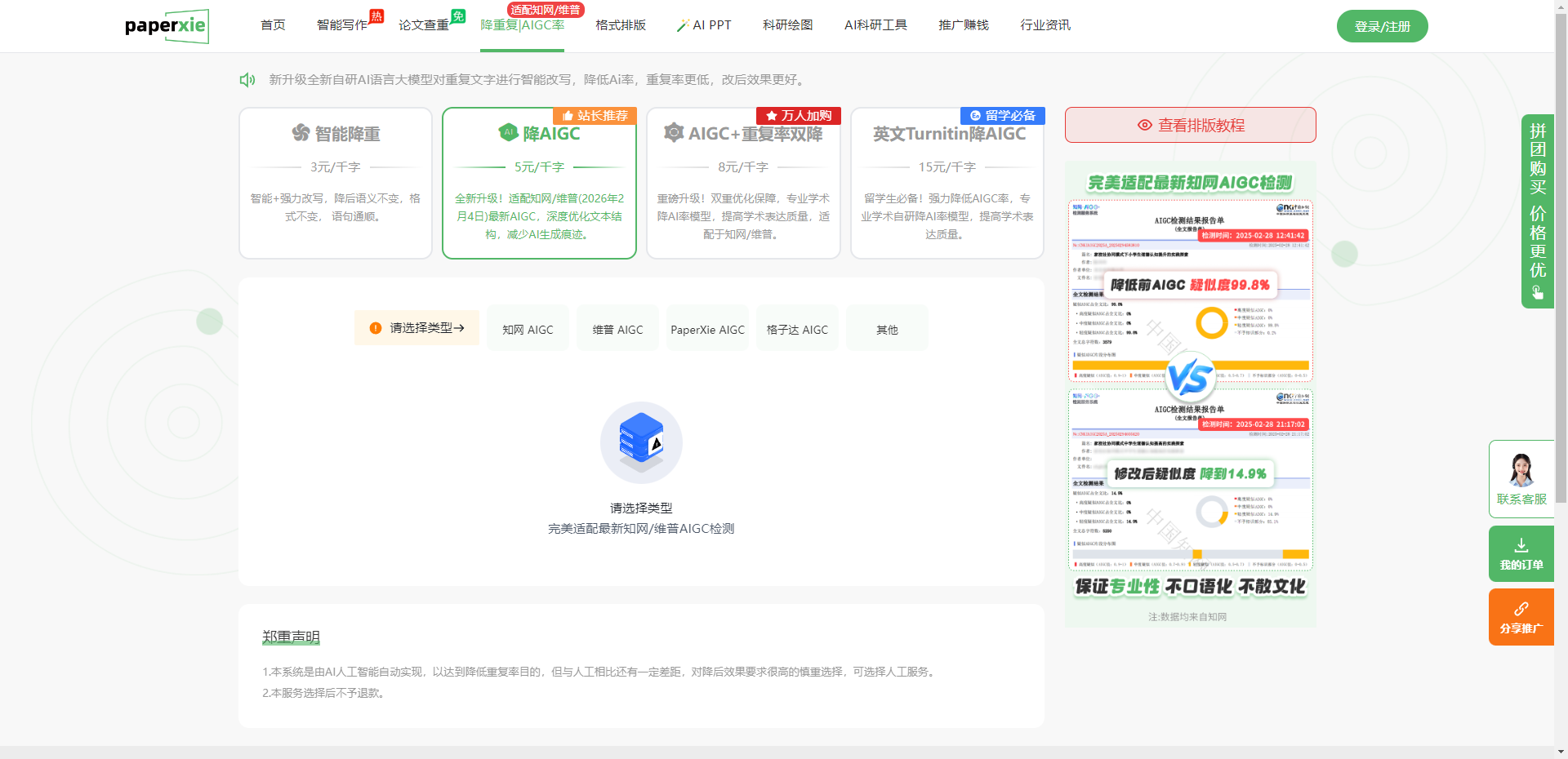 降重功能同样强大,智能降重 3 元 / 千字,适合快速压低文字重复;站长推荐的降 AIGC 服务 5 元 / 千字,深度优化文本结构,消除 AI 痕迹,实测可将 AIGC 疑似度从 99.8% 降至 14.9%。AIGC + 重复率双降服务 8 元 / 千字,双重优化保障,硕博论文首选。英文场景适配 Turnitin,15 元 / 千字的英文降 AIGC 服务,精准匹配国际标准。Paperxie 最大亮点是精准识别并保留公式、代码、专有名词,绝不篡改核心学术内容,全链路闭环操作,查重 - 降重 - 复检一站式完成。